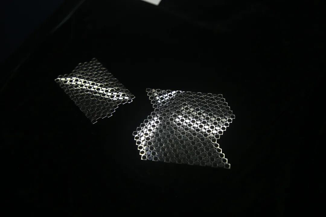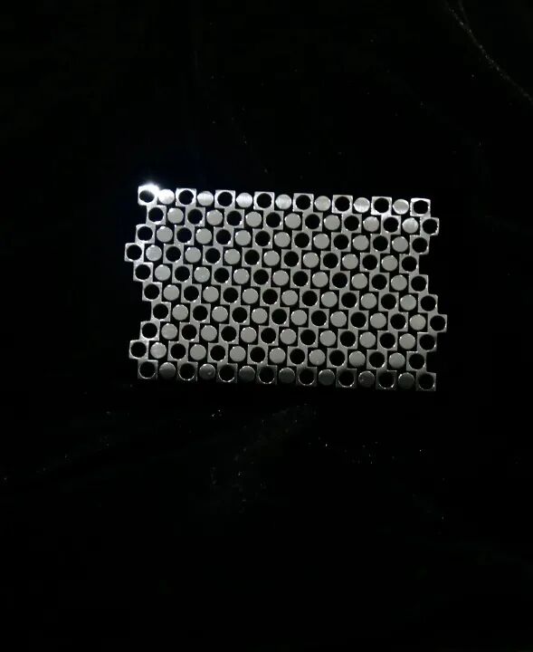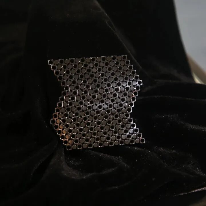 本系列设计作品以蕾丝为灵感,围绕分割的几何形态与蕾丝进行设计,将规矩的几何变形、拆解,并结合与往常“优雅”、“高贵”印象的蕾丝截然不同的强折射金属蕾丝完成,探索解构主义中设计的更多可能性。