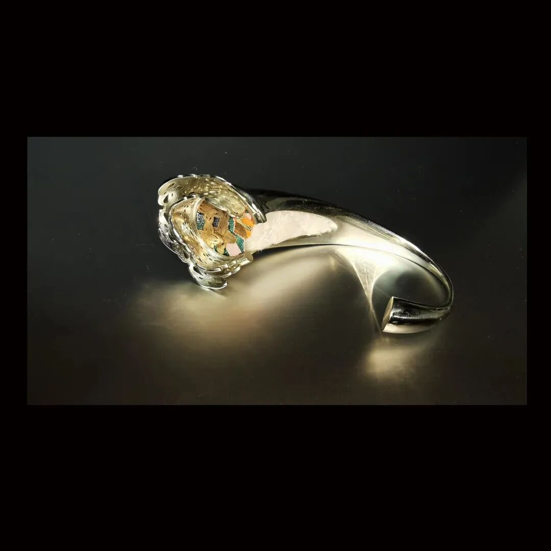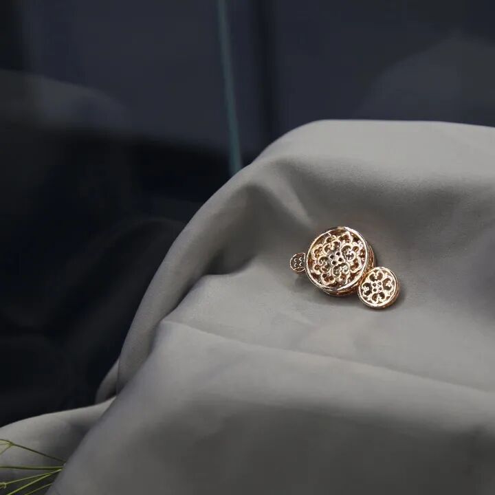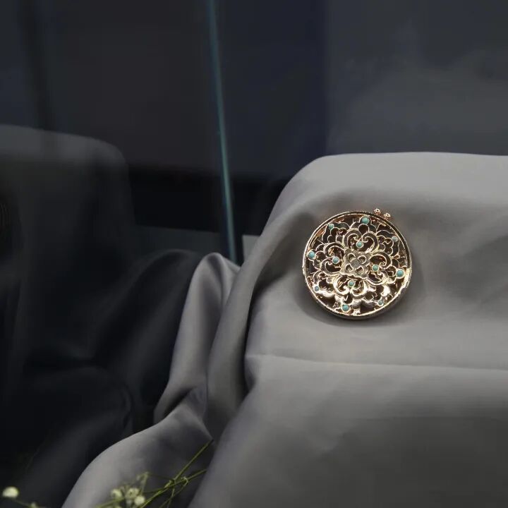 本作品以敦煌壁画中的佛像背光为题,借圆之形以示圆全;借宝相花纹以示幸福美满;借视错觉图形以及旋转结构以示佛光散射普照。除可作胸针佩戴外,还可在闲暇时置于手上把玩。本作品以首饰设计致敬敦煌艺术的同时也表达对未来美好生活的祝愿。