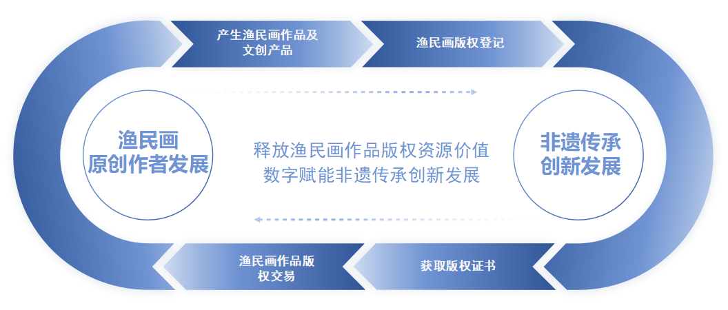 “渔民画云码头”是全省首个渔民画数字化版权交易平台,通过规范渔民画作者版权登记及交易、渔民画作品在线销售、业务主管部门监督管理,实现渔民画宣传、保护、交易、传承、弘扬等工作的制度重塑、流程再造、系统重构。