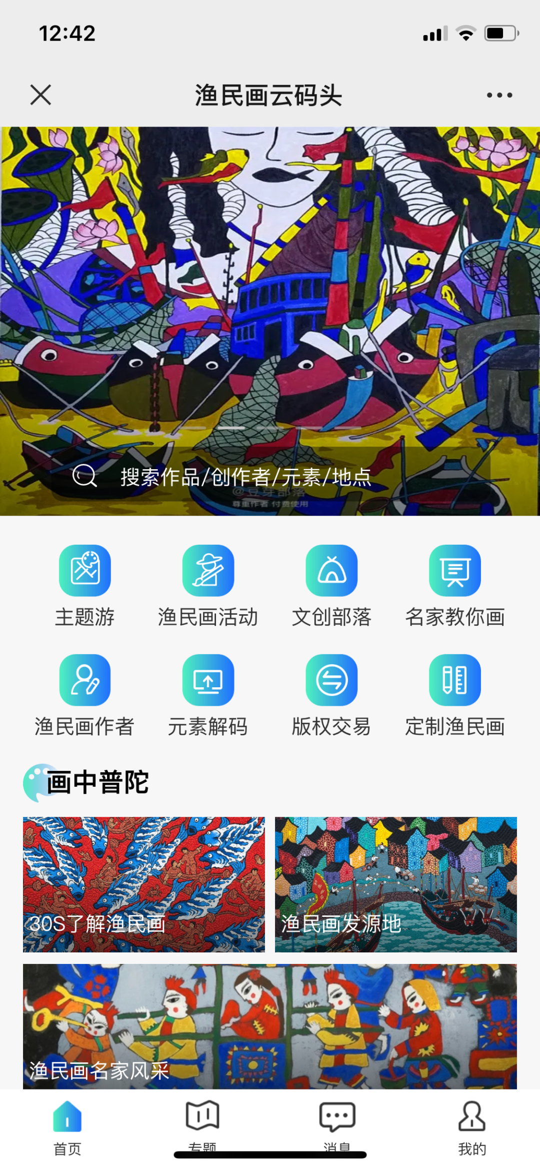 普陀“渔民画云码头”于2022年4月29日在浙里办“浙里好玩普陀品牌馆”上线。把渔民画进行数字化“微改造”,推动传统非遗产业化发展!