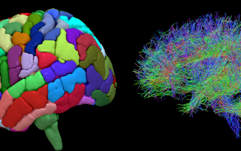 刘易斯·斯皮茨外科科学家阿斯文·查理(Aswin Chari)教授及其科研团队通过对大脑区域结构性影像(左半图)以及大脑联络通路弥散成像(右半图)的整合,构造出“神经联络网”。他们的发现为外科手术治疗儿童癫痫奠定了基础。