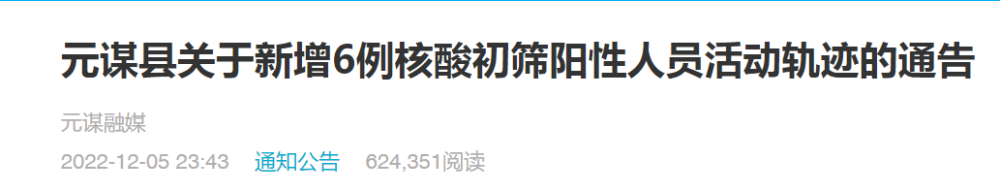 《元谋县关于新增6例核酸初筛阳性人员活动轨迹的通告》