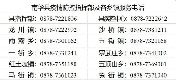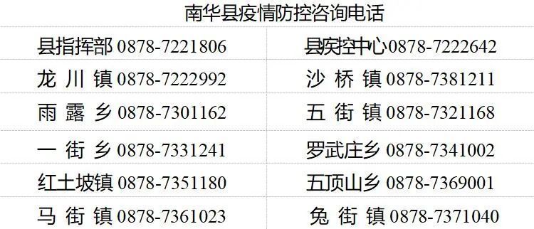 来源:元谋县委县政府应对新型冠状病毒肺炎疫情工作领导小组指挥部、元谋融媒、南华县委县政府应对新型冠状病毒肺炎疫情工作领导小组指挥部、南华融媒、南华县人民政府网、e禄丰云客户端