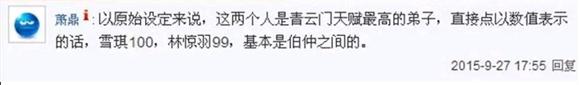 萧鼎的说法是陆雪琪 100,林惊羽 99 的样子……