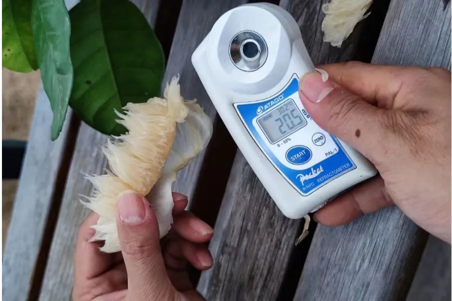我们给大家挑选的果子,都经过了大小分拣和批次糖分抽检。柚子太大,容易干水,太小出肉率低,所以我们给大家选的沙田柚重量都在2.2-2.5斤左右,大小适宜。糖分的批量检测,要在平均达到18°以上才算达标,开始出售~