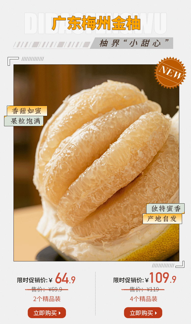 来自广东梅州的金柚,在选品会上,凭借其更加甜美的滋味和脆中带嫩的口感,从一众沙田柚中脱颖而出,成为“巅上翘楚”,被风物君选中带给大家。
