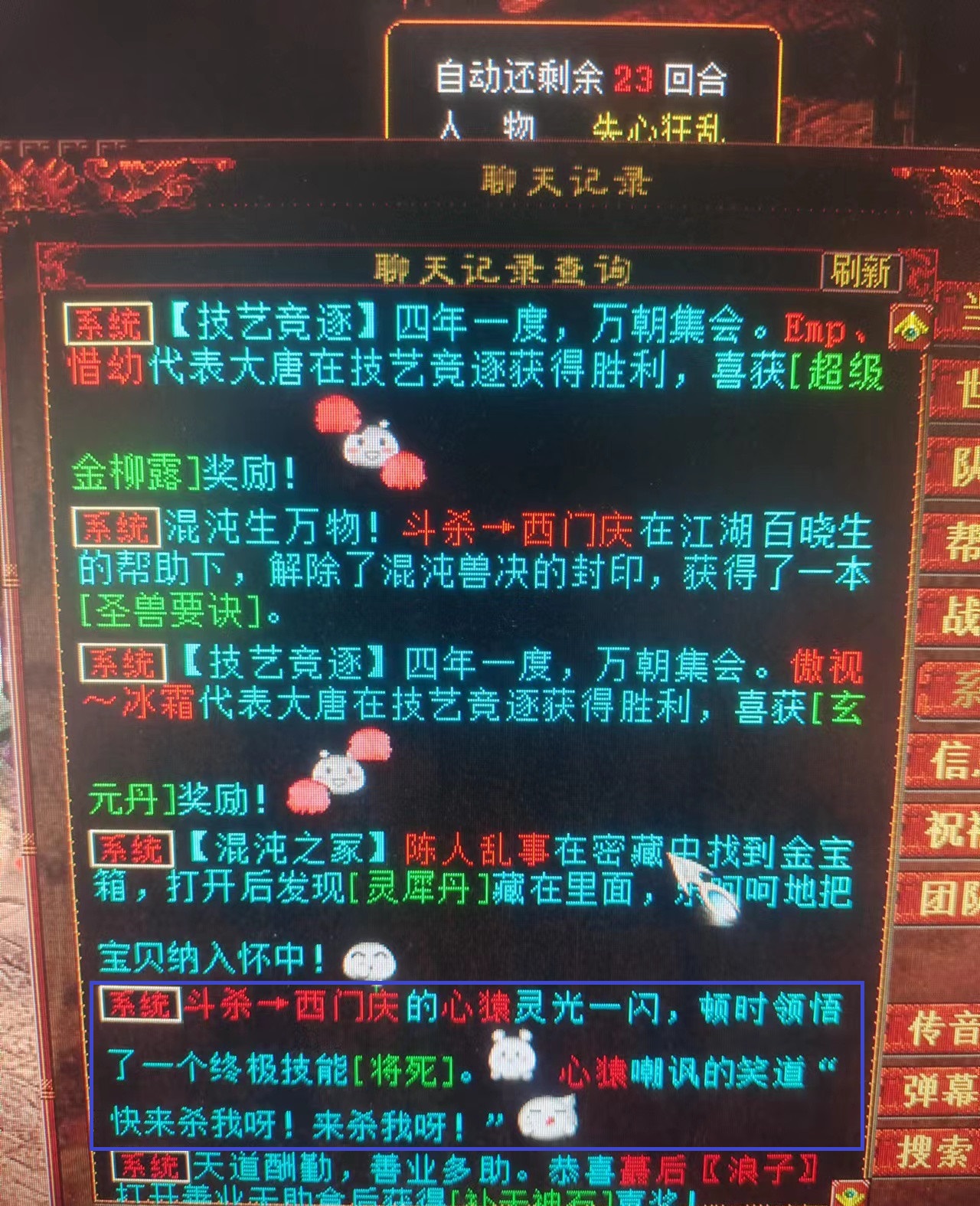 忽视底子6.9的玩家也是通过九九八十一难,终于被好事砸到头上了,并且是开光特技。只不过是,又跑错场地了,忽视睡10,估计是秒下线了。