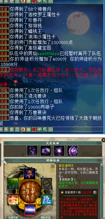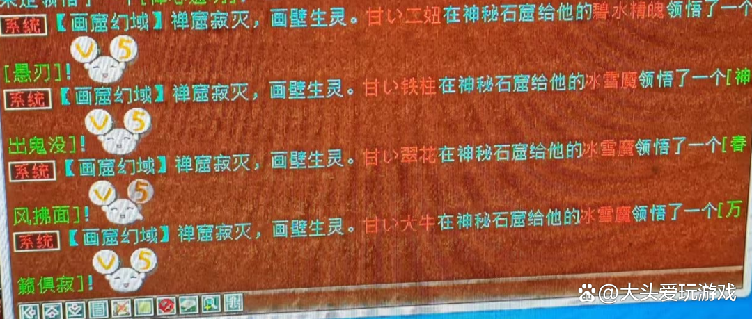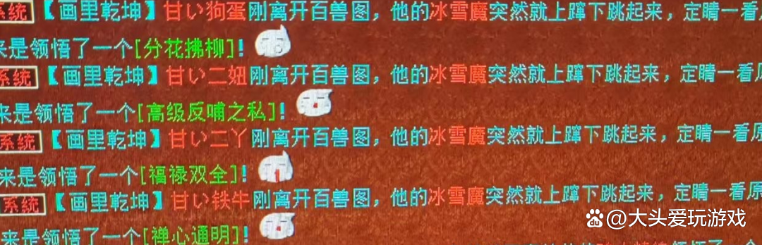 先看技能,这是画里乾坤副本换技能的结果,全是高级技能,重点是一个接一个。更神奇的是有一只冰块得到一个神出鬼没、分花拂柳技能。铁柱,大牛,翠花,怎么这么神奇,有多少玩家画里出来都悟不到高级技能。
