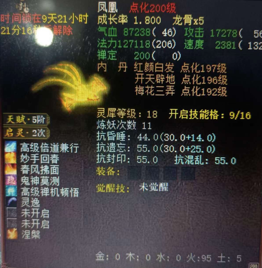 这个操作也是震了很多玩家,2连发让200级的凤凰开了第7和8技能格子。曾经咨询过很多玩家,这个需要几十个丹,基本要1000才能砸开,怎么到这个凤凰身上好像就不灵验了。