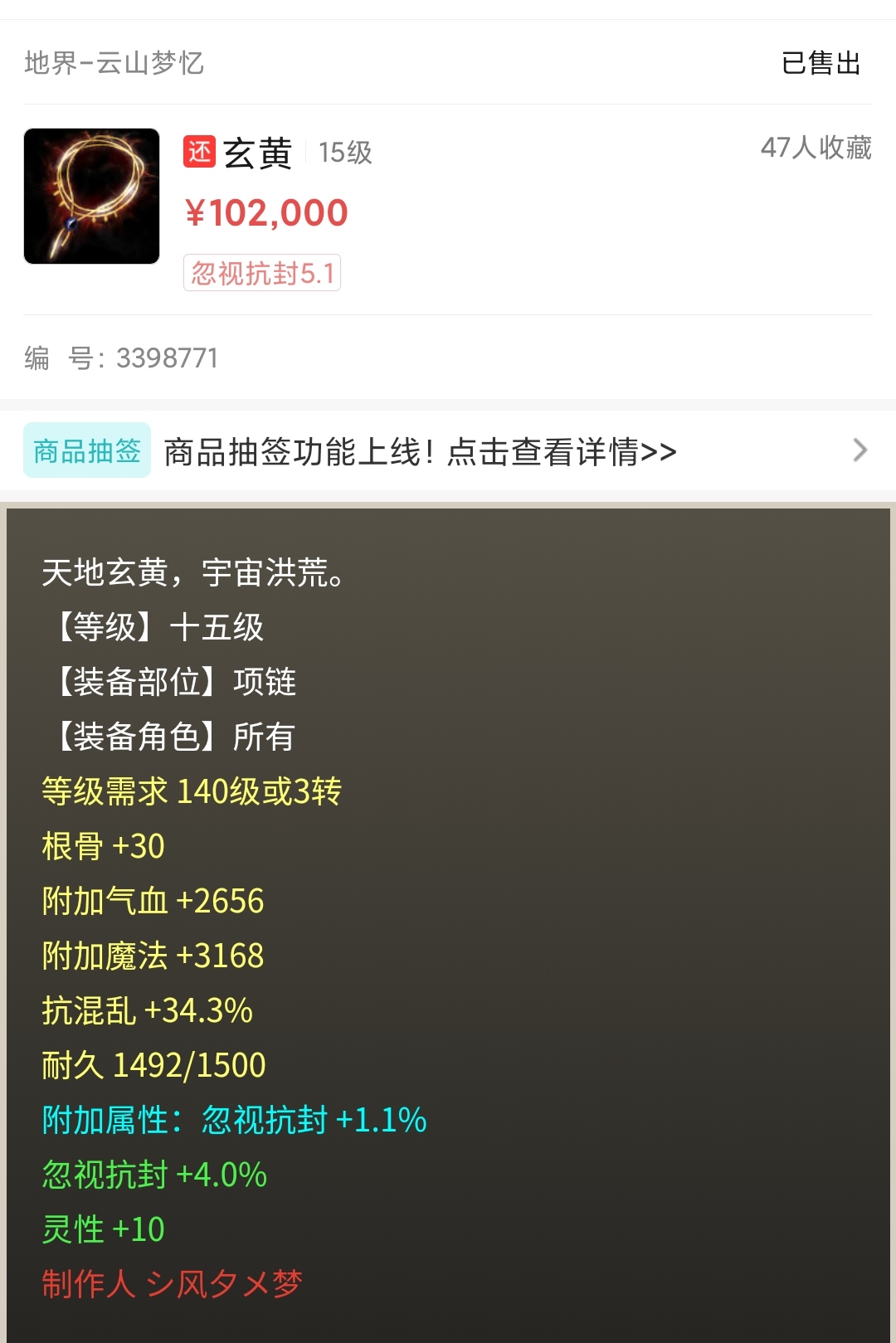 男人装备属性就是有些稍贵,玩家这件底子根骨30,抗混34,特别是蓝字忽视抗封1.1,炼化忽视冰4太完美了。完美的102000被点走了,不怕贵,怕的是没有极品属性,不信可以往下看。