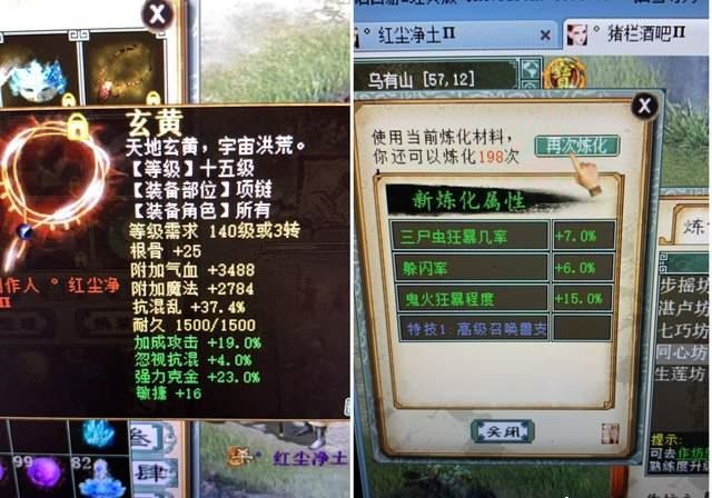 这也是一位被上天照顾2次的玩家,第一次给一条14级链子洗出了忽视混4的属性。不多一会另一个角色的链子又洗出一条高级召唤兽支援技能。并且炼化的属性也不赖,数字狂暴7,躲闪6,鬼火狂暴程度15。