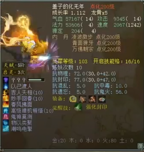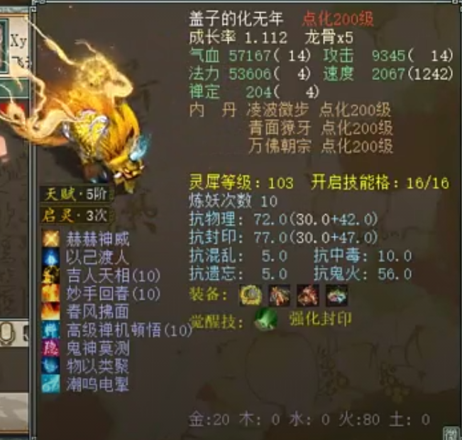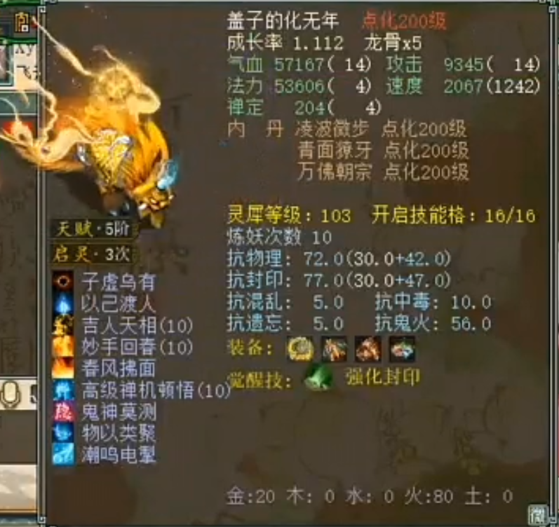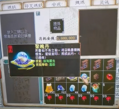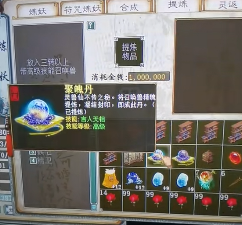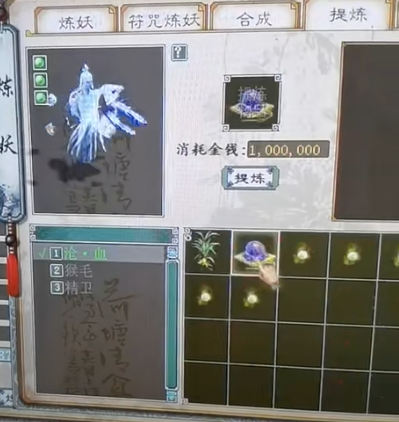 3、这是一位来自凌烟阁服务器的玩家,他要提炼三只宝宝,这三只宝宝分别提炼的目标是分花、吉人以及探海屠龙,然后我们看看他是否能得到表哥的关照吧?首先提炼的是吉人冰雪魔,接着一发入魂成功提炼,然后提炼的是分花黄金兽,那么这次就提炼失败了,最后提炼的探海屠龙苍凛,结果成功提炼,三成二的结局也很幸运。