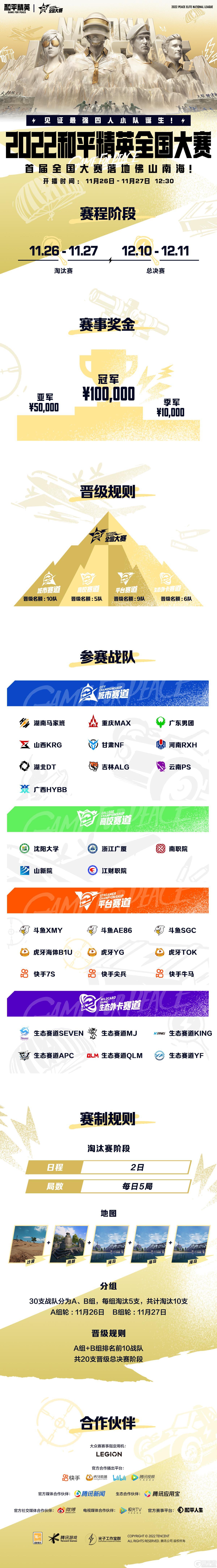 2022和平精英全国大赛火热来袭,首届比赛落地佛山南海,各路高手齐聚一堂,共同见证和平精英四人小队诞生!