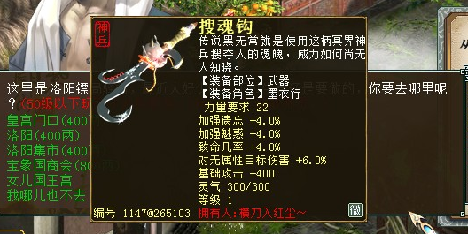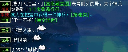首先玩家展示两把男鬼的天花板武器,一把为六阶主鬼火,另一把为六阶主遗忘,看着都是非常的养眼。这位老铁挖宝前还在世界频道上喊话:“表哥,刚买的号,来个神兵!”,接着他就挖到了一把搜魂钩,这也太神奇了吧?
