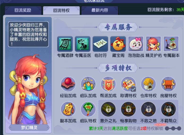 第二个叫做回流福利,也是一些任务,完成后获得奖励。