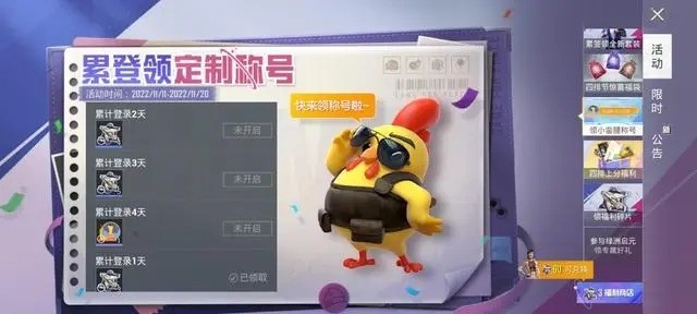 喜欢称号的玩家,还可以参加累计登录领取定制称号的活动,只要累计登录四天就可以领取到了,这样就又白薅了一种福利。简直是不要太开心,白送的就是香。