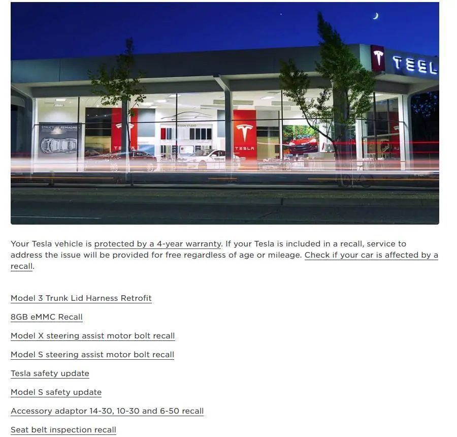 特斯拉部分召回官网截图