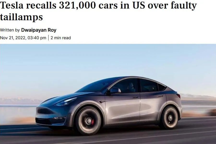 特斯拉最近期的召回事件是关于尾灯缺陷的,涉及到321,000辆。而幸运的是,灯光相关的问题并不严重而且发生概率极低,同时刹车灯和转向灯并未受到此次缺陷的影响。
