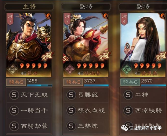 (副将)孙尚香,战法搭配:裸衣血战+三势阵