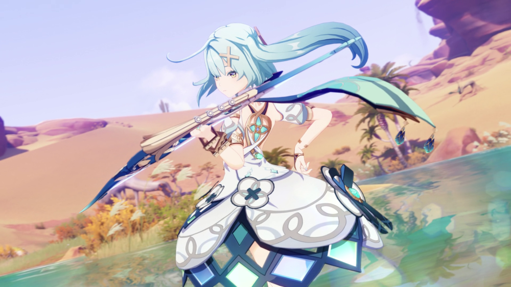 最近看珐露珊的角色演示是越看越上头,和她年龄不相符的带感音乐,还有她本身讨喜的声线、人设和外表;当然在角色演示前,得知她是能减风抗的四星风辅时就已经相当期待了。接下来给大家分享初音未……不对,是珐露珊的培养攻略。