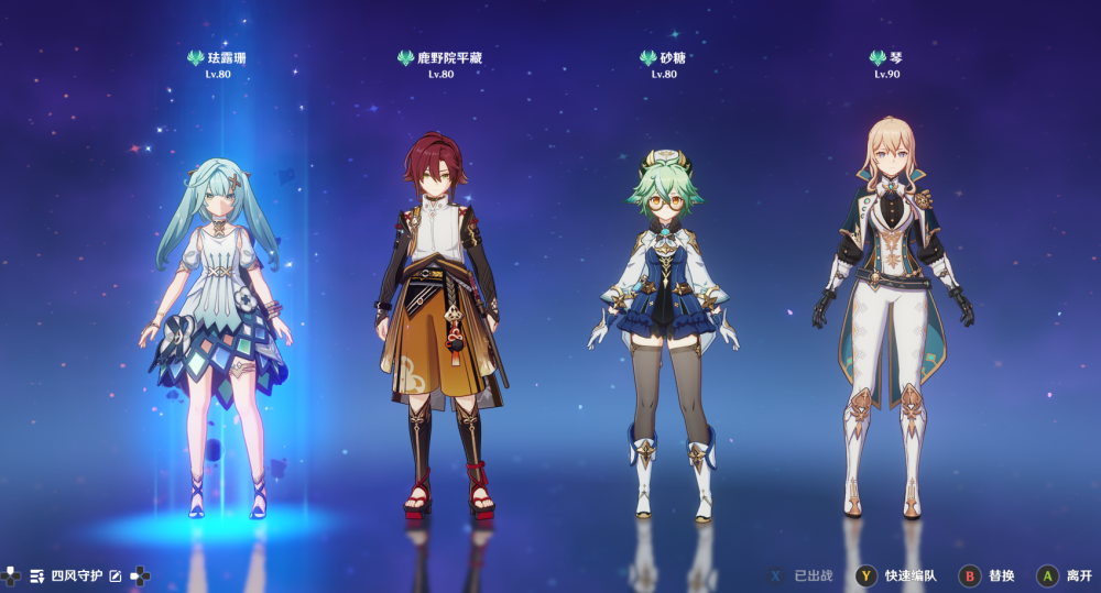 “四风守护”:珐露珊+鹿野苑平藏+砂糖/万叶/温迪+琴。偏整活的配队,因为珐露珊的辅助效果所有类型的风伤都能享受,所以包括她本身,四个队友都选择了可以速切的风系角色,快乐就完了。