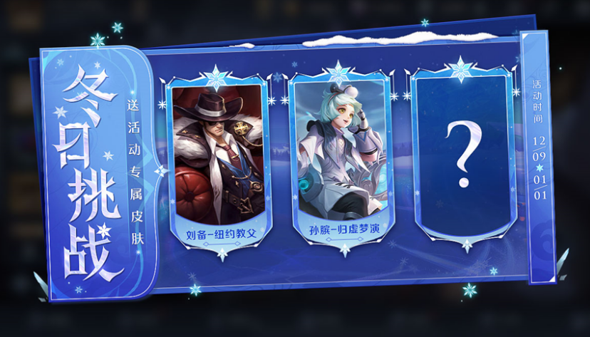 刘备的纽约教父和孙膑的归墟梦演返场,这两款皮肤都是活动专属的限时皮肤,此次再次以活动的形式进行返场。12月9日,参与冬日挑战,可以获得皮肤自选礼包,其中不仅包含了刘备的纽约教父和孙膑的归墟梦演,而且还有拖尾自选宝箱和头像框自选礼包等好礼。