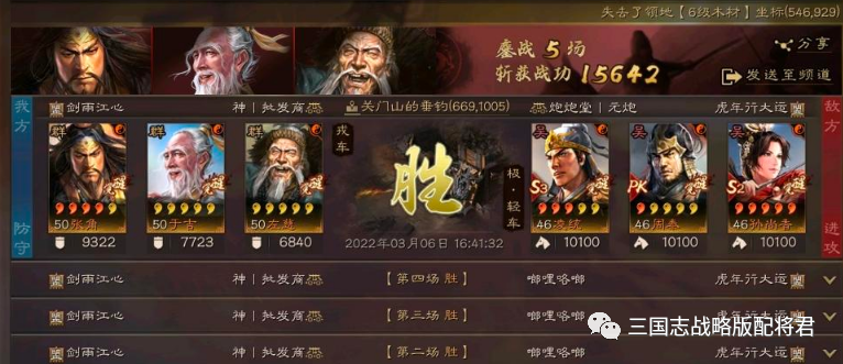 总结:那么这个阵容到底是怎么做到多穿的呢?其实在战法配置方面都没太大的变化,算是比较标准的藤甲盾了,在兵种方面算是有一定的微调整吧,这点大家可以学习一下!所以想要多穿那么队伍里面肯定还是得以打菜刀队为主,不可能说碰到大火也每次都能稳稳多穿的,带了藤甲兵即便有刮骨疗毒的情况下,也大概率是劣势局,正常遇到点火队能打平甚至小优势都算是超长发挥了,所以不难得出,环境需要以兵刃队伍居多,可以碰到法师队却一定不能碰到点火队,否则基本上不具备多穿的可能性,甚至直接翻车!