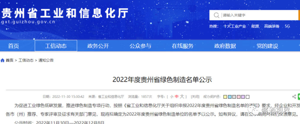 11月30日,贵州工信厅发布2022年度贵州省绿色制造名单公示。公示名单显示,贵州珍酒酿酒有限公司、贵州省仁怀市茅台镇夜郎古酒业股份有限公司、贵州岩博酒业有限公司、华润雪花啤酒(黔南)有限公司、贵州茅台酒厂(集团)习酒有限责任公司等5家酒企业入选2022年度贵州省绿色制造名单的绿色工厂和绿色供应链名单。