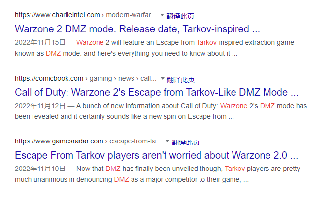 《战区2》除了主打的大逃杀模式之外,另设计了一个全新的模式:无人区(DMZ)。根据上线前的宣传与泄漏情报,DMZ可能参考了《逃离塔科夫》,单局游戏不再指定唯一胜者,玩家只要带着自己搜刮到的物资活着撤离,就算成功。