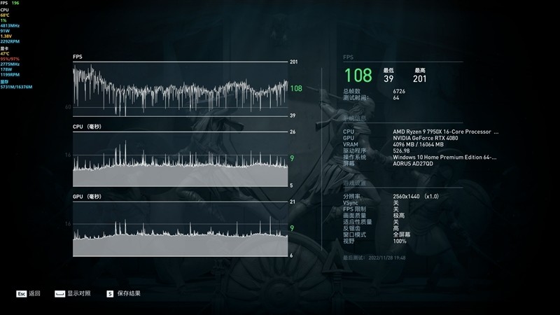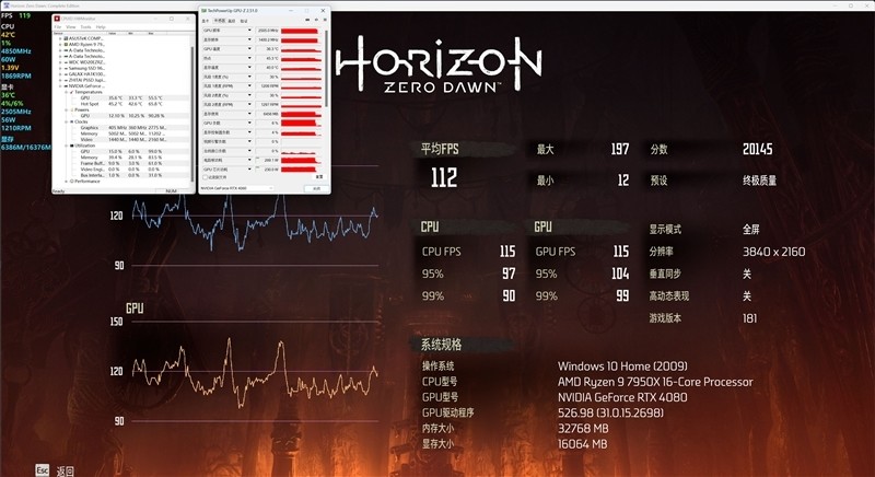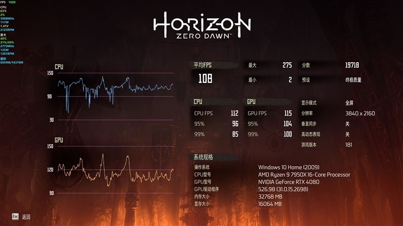 《地平线:零之曙光》在4K+预设最高的终极质量画质下,平均帧数为108 FPS。