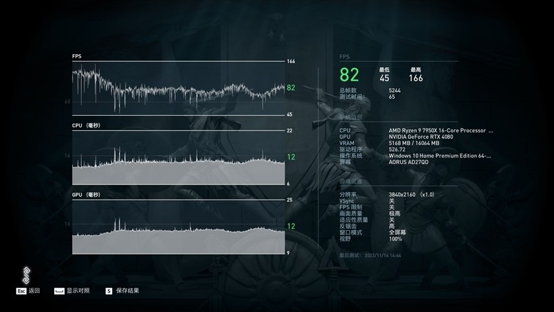 在此章节只测试七彩虹iGame RTX 4080 Advanced OC的常规游戏性的基准,设置均为4K分辨率+最高画质。