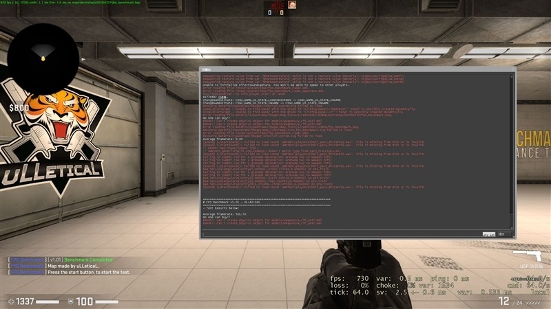 FPS射击游戏《CS:GO》在2K+最高画质,平均帧数为501.7 FPS。