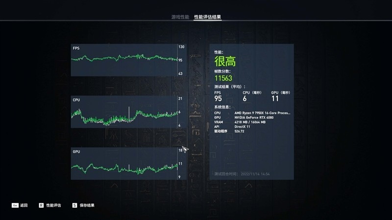 《刺客信条:起源》在4K+极高画质下,平均帧数为95 FPS。