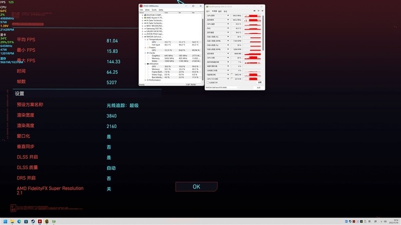 光追和DLSS 3的表现在下一章节单独测试。