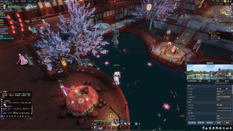 在《逆水寒》中,4K分辨率下开启最高画质,光追和DLSS关闭,当前游戏场景帧率为60 FPS。