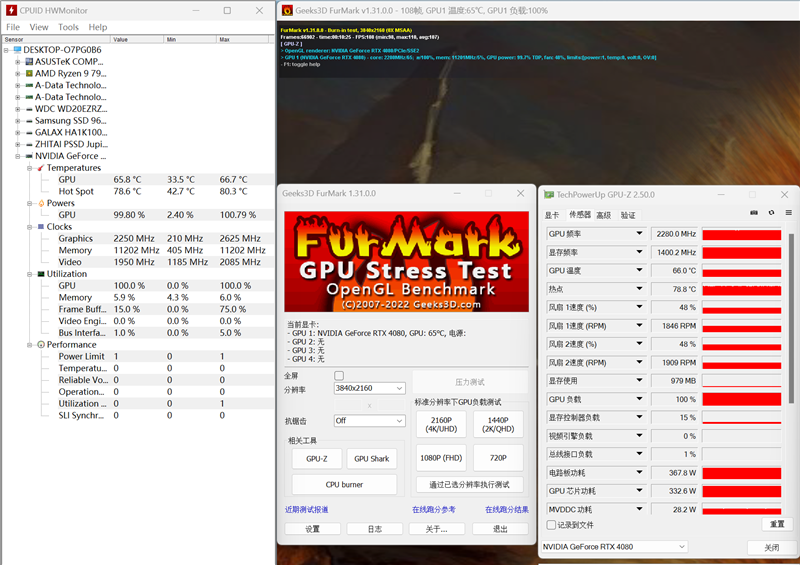 其实TGP是对应GPU加速频率的,也就是说根据频率动态调整功耗,玩家自然不用担心RTX 4080也是“核弹”。就我们使用的X670E+锐龙97950X测试平台而言,使用850W也是完全可以带动的。