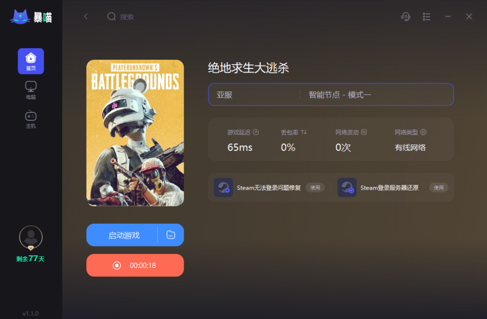 如果在届时在进游戏时有打不开/登录卡加载/闪退/黑屏的问题可以试试使用暴喵加速器,绝地求生进不去一般都是服务器问题或者是服务器有变动,只需要开个加速就好了,暴喵支持pubg多区服多节点一键加速,加速后即可稳定连接不掉线,吃鸡更畅快,输入bmmtc还能获取三天的时长哦~