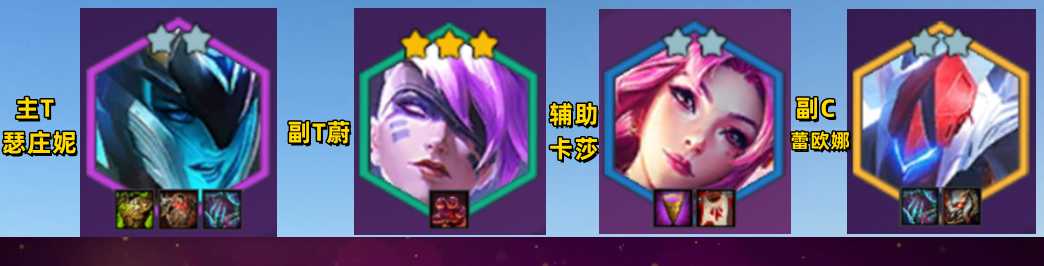 这是一套2费卡主C的赌狗阵容,最好能拿到咒能高涨才考虑玩,没有也能玩,只是不够吃鸡强度。