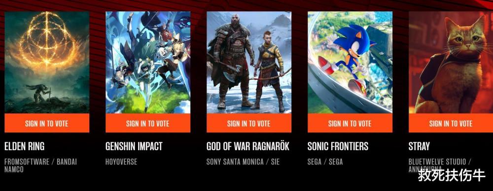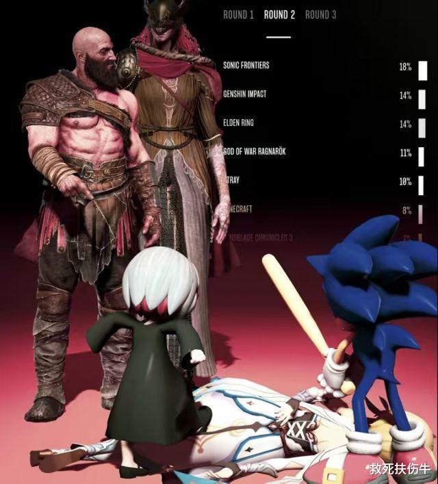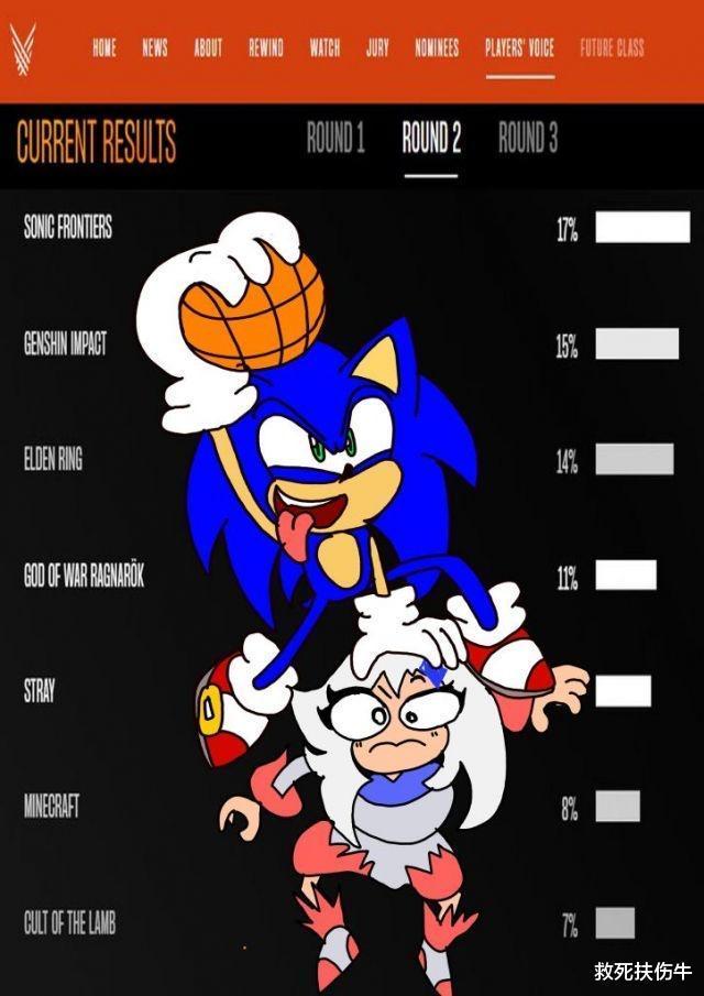 TGA作为一个相对权威的游戏奖项,个人觉得自从把美末2评了个年度最佳,这个奖声望就暴跌了,除了官方评委打分的奖项,有一个比较特殊的是还有一个“玩家之声”,玩家投票占比100%的TGA奖项,今年最后提名的五个游戏就有原神和索尼克:未知边境。