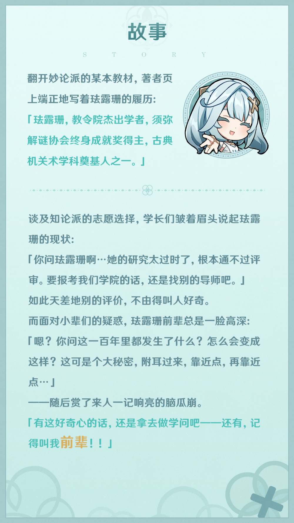 「这种时候要学着依靠前辈!」——「机逐封秘」·珐露珊