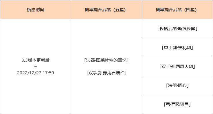 ●活动期间,限定五星武器「法器·图莱杜拉的回忆」「双手剑·赤角石溃杵」的祈愿获取概率将大幅提升!