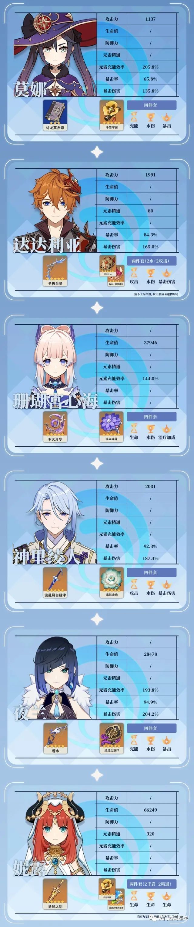 手机访问:wap.265xx.com《原神》水五星角色毕业面板参考