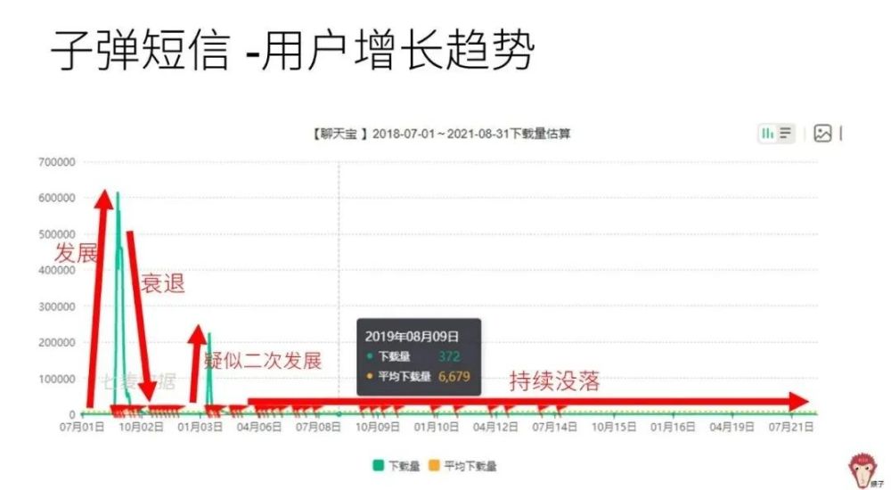 子弹短信的用户增长曲线和恋与制作人有些类似,经历了快速的发展和衰退期。