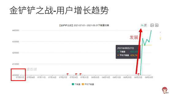 两款应用,金铲铲之战从正式面世开始就进入高速发展期,用户增长迅速且体量很大,单日下载量都在40万以上。从上线到8月31日,应用处于发展期。