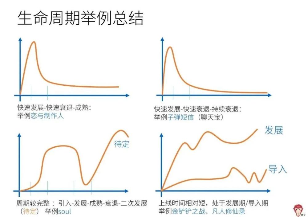 产品可能上线时间较短,尚处于导入期/发展期;可能经历了发展期后走向成熟;可能经历了快速发展和衰退后一蹶不振;也可能在衰退期后二次成长。