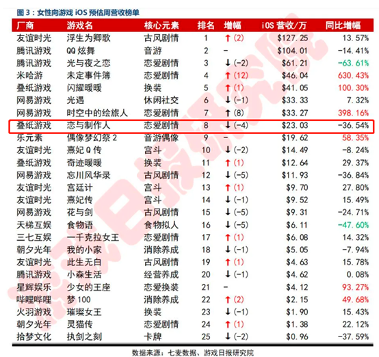 需要注意,恋与制作人和子弹短信是区分成熟期/衰退期,因此重点关注的产品及市场信息是:市场份额情况、产品变现情况等。