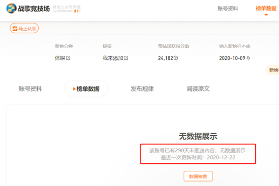(战歌竞技场自媒体数据 图片来源:新榜)