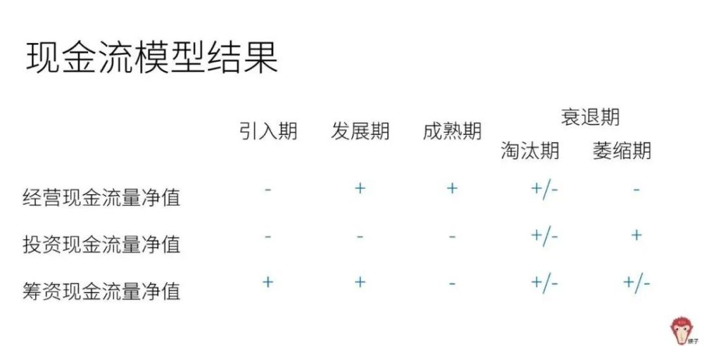 结果的运用非常简便,只要明确三个现金流净值的正负,就可以对应表格,确定产品目前所属的生命周期阶段。