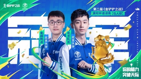 北京时间2022年11月27日,第二届金铲铲之战“高校杯”邀请赛双人作战决赛正式打响。在经历了BO5的巅峰脑力对决后,来自北京大学的双人作战搭档皮卡队长与麦林炮冰凭借着强大的硬实力、默契的配合以及出色的思路,以五局两次登顶的出色战绩获得了本次高校杯的冠军。