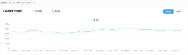 素材投放层面,四排节一周之前,《和平精英》的投放达到了本月的高峰,单日素材投放数达到了596组。这轮投放从11月13日一直持续到11月20日。